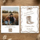 Verkünden Sie Ihren besonderen Tag mit dieser westlichen rustikalen Boho-„Save the Date“-Einladung, die für Paare konzipiert ist, die natürliche Texturen, erdige Töne und modernen Komfort lieben. Dieses bearbeitbare Design verfügt über einen Fotobereich und einen QR-Code, der es den Gästen leicht macht, auf Ihre Hochzeitswebsite, RSVP-Details oder den Veranstaltungsort zuzugreifen.
