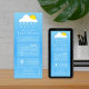 Die Wettervorhersage-App inspirierte eine neutrale Babydusche-Einladung mit Wolken und Sonnenuntergang über blauem Hintergrund mit individuellem Weißtext und Icons.