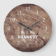 Hochzeitszeit mit rustikalem, verwittertem Holzboden. Personalisieren Sie die Uhr im Bauernstil mit dem Nachnamen des neuen Ehepaares für ein einzigartiges Hochzeitstag-Geschenk.