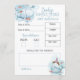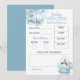 Blauer und weißer Wal Junge Dusche "Vorhersagen und Ratschläge" Karte. Um sie zu personalisieren oder Text, Farben und Schriftart zu ändern, klicken Sie bitte auf die Schaltfläche, um das Design zu bearbeiten. Umfasst Geburtsdatum, Uhrzeit, Gewicht, Länge, Augenfarbe, Haarfarbe, Ähnlichkeit und Raum, um den neuen Eltern eine Ratgeberbotschaft hinzuzufügen.