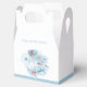 Whale Baby Dusche danke Ihnen für die Kästen mit einem minimalistischen Design in blau und weiß. Personalisieren Sie es mit einer Nachricht auf der Vorderseite und dem zukünftigen Namen, und Party auf der Rückseite.