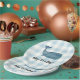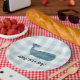 Unser blauer Gingham-Karo ist ein Teller, der sich perfekt für Babyduschen eignet.