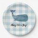 Whale Blue Gingham Baby Shower Ahoy ist ein Junge Pappteller