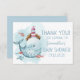 Personalisierte Wal-Babydusche danke Karten. Niedliches Design in Blau und Weiß, vollständig editierbar mit dem Mama-to-be-Name und Party-Datum.