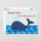 Ein niedliches Wal- und Wassermassage Kinderdusche Thema danke Postcard. Passen Sie diese Vorlage nach Belieben an. Dieses Design koordiniert das Thema "Whale It's A Boy" Babydusche von Night Owells Menagerie. Originelle Vektorkunst von Night Owells Menagerie, 2015.