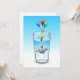 Schwimmbad Party Geburtstagseinladung mit einer niedlichen Abbildung eines kleinen Wals. Der Wal trägt einen rot-weiß gestreiften Hut und hat die Geburtstagsparty gestartet, die in einem gefüllten Wasserglas stattfindet.