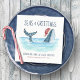 Nautical Spaß Weihnachtsservietten verfügen über einen Aquarellwal, der eine Weihnachtsmannmütze trägt, die im Meer schwimmt und dessen Schwanz mit Streichlichtern geschmückt ist. Die Grüße "Seas & Greetings" und "Einen Wal von einem guten Weihnachtsfest wünschen", zusammen mit dem Namen können personalisiert sein. Ideal für Feierlichkeiten zu Themen wie Küste, Wassersport, Strand und Tropen. Kunst von KL Stock