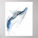 Handgemalte Wasserfarbe eines Walfangs, mit Ozeanspray und blauer Färbung. Stilisiert, abstrakt.