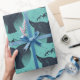 Geschenkpackung mit einem Abzeichen-Stil grafische Muster Features Wale Schwanz Silhouette mit Berg Kontur auf leichtem aqua Hintergrund