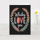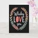 This greeting card centers on the sweet phrase “Whaley LOVE you,” arranged to feel like a little inside joke between close hearts 🥰. “Whaley” and “you” appear in smooth, flowing lettering, while the “L” and “E” in “LOVE” use a crisp, simple style that makes the middle stand out. The “OV” is colored coral-red and sprinkled with tiny white hearts, giving the message a soft, affectionate sparkle ❤️. A stylized laurel wreath wraps around the words, like a gentle hug framing the note. The leaves shift through muted peach, blush, sage, and warm ochre tones, each dotted with small white speckles that add a cozy, textured look. Everything sits on a deep, velvety black background that makes the warm colors and white accents pop. The coral “OV” sits at the center of “LOVE,” with the wreath forming an oval border around the text and the little white hearts clustered across the red letters.