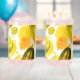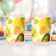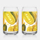 The design on these can glasses is watercolors of full and halved pickles with orange splatter, the set will make colorful decor in the home on those hot summer days.
