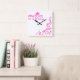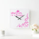 Funny, was auch immer ich eine Prinzessin-Mauer-Uhr bin. Weiß und heiß rosa. Rosa Krone mit sinkenden Zahlen.