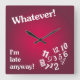 Whatever - I'm late anyway - Red Clock Design Quadratische Wanduhr