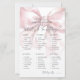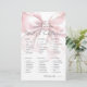 What’s In Your Purse? Bridal Shower Game. This playful activity invites guests to search through their purses and check off items from a fun point-based list, making it an easy and entertaining icebreaker for any bridal shower. The design features a soft blush pink watercolor bow in the background, adding a gentle, feminine touch while keeping the layout clean and versatile.