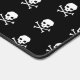 Schreibtischmatte mit Schädel und Kreuzknochenmuster. Hintergrundfarbe, Größe und Winkel des Musters können geändert werden.