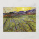 Eine kunstvolle Postkarte mit dem postimpressionistischen Gemälde, Weizenfeld mit aufstrebender Sonne (1889), von Vincent van Gogh (1853-1890). Die Morgensonne, die über den Bergen aufsteigt, strahlt das Licht auf die Weizenfelder unten aus.