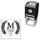 Eleganter Weizenlaurels-Rahmen mit Monogramm-Buchstaben und vollständigem Nachnamen im Skript mit Straßenadresse und Postleitzahl. Ideal für Hochzeitsfeiern oder für alle Bürobedürfnisse!