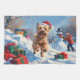 Wheaten Terrier läuft im Schnee mit Weihnachtshut Geschirrtuch