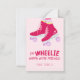Ich bin WHEELIE froh, dass wir Freunde sind! Eine personalisierte Valentine's Day-Karte im süßen Klassenzimmer mit heißen rosa Roller-Skaten, lila Rädern, einem handgeschriebenen Gruß und einem fröhlichen Herzstützen.