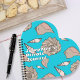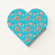 Custom, heart-shaped notebook with illustrated seashells design. Bright, aqua blue color with a pattern of whelk shells in shades of beige with pink. The design continues on the back. Customize white text on the front with her name and any text, such as, "Private Journal", or "Emily's (your name here) Sketchbook". This cute notebook is perfect for a beach loving teenager, with optional lined or blank pages.