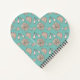 Custom, heart-shaped notebook with illustrated seashells design. Tropical turquoise color with a pattern of whelk shells in shades of beige with pink. The design continues on the back. Customize white text on the front with her name and any text, such as, "Private Journal", or "Emily's (your name here) Sketchbook". This cute notebook is perfect for a beach loving teenager, with optional lined or blank pages.