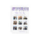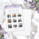 The design features soft watercolor lavender and lilac flowers arranged along the top, creating a gentle, romantic accent without overwhelming the layout. A mix of purple and gray fonts keeps the look refined and balanced, while the rest of the design stays clean and uncluttered so the focus remains on the photos and gameplay.