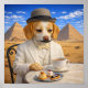 Jed the Lemon Beagle is Hercule Poirot in "Death on the Nile", but he's taking a break waiting for Agatha Christie because he is anxious to tackle his favorite pastries. Poirot loves his sweets.