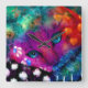 Whimsical Abstrakt Dreamy Kitty Cat Aquamarin Lila Quadratische Wanduhr