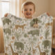 Wrap your young explorer in the soft warmth of the savanna with this Whimsical African Animals fleece blanket. This cozy throw features the complete collection of hand-drawn friends, including a gentle elephant, a tall giraffe, a proud lion, a zebra, and playful monkeys. The high-density all-over print allows every animal to be seen on the front, creating a vibrant scene for a young child to enjoy. Rendered in a sophisticated palette of sage green, terracotta, and tan on a linen-textured background, this blanket provides a modern, artistic touch to any bedroom or reading nook while keeping your little adventurer snug and warm. Part of our coordinated 'Kid's Safari Decor' collection. Note: design adapted from generative content.
