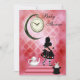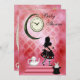 Pink Baby Dusche lädt für Mädchen ein - Whimsical, niedlich und schön surreal Alice im Wunderland pink Baby Dusche Einladungen mit einer hübschen schwarzen Vintagen Silhouette von Alice mit einem eleganten rosa Flamingo. Sie steht auf der Oberseite einer rosa Treppe neben einem goldhalbmondfarbenen Ornament, von dem eine Uhr hängt. Auf der Uhr geschrieben steht: "Ich bin zu spät für ein sehr wichtiges Datum" Auch auf der Treppe ist ein hübscher weißer Teekanne und ein weißes Kaninchen in einem schwarz verrückten Hut. Auf der Rückseite der Einladung ist eine weiße schöne Spitze und Perlen Matte mit rosa Rosen für Sie personalisieren mit Ihren Duschdetails. Stilvolle, moderne, schicke, glamouröse Fantasie Art Baby Shower Einladungen. Wenn Sie Hilfe bei der Anpassung Ihres Produkts benötigen, kontaktieren Sie mich bitte durch mein Geschäft und ich werde Ihnen gerne helfen. Perlen und Spitzen auf der Rückseite von Einladungen von ©Hazel Kinvig-Paul www.design-a-dream.co.uk Bitte beachten: Alle Einladungen auf Zazzle haben flache gedruckte Bilder.