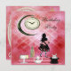 Hübsch rosa Alice im Wunderland Geburtstagstee Party lädt für Mädchen und Frauen jeden Alters ein - Whimsikale, niedliche und schöne surreale Alice im Wunderland Einladungen mit einer hübschen schwarzen Vintagen Silhouette von Alice mit einem eleganten rosa Flamingo. Sie steht auf der Oberseite einer rosa Treppe neben einem goldhalbmondfarbenen Ornament, von dem eine Uhr hängt. Auf der Uhr geschrieben steht: "Ich bin spät für ein sehr wichtiges Datum zu spät" Auch auf der Treppe ist ein hübscher weißer Teekanne, ein Kuchen auf einem Ständer, ein niedliches trinken ich mich Flasche und ein weißes Kaninchen in einem schwarz verrückten Hut. Auf der Rückseite der Einladung ist eine weiße, schöne Spitzen- und Perlmatte mit rosa Rosen für Sie, um mit Ihren Event Details, die weiße Kaninchenherde, die Königin der Herzen spielen Karte, Gold Taschenuhr und ein Konfitürenherz personalisieren. Stilvoll, modern, elegant, glamourös Fantasiekunst Einladungen. Wenn Sie Hilfe bei der Anpassung Ihres Produkts benötigen, kontaktieren Sie mich bitte über mein Geschäft und mein Geschäft wird Ihnen gerne helfen. Perlen und Spitzen auf der Rückseite von Einladungen von ©Hazel Kinvig-Paul www.design-a-dream.co.uk Bitte beachten: Alle Einladungen auf Zazzle haben flache gedruckte Bilder.