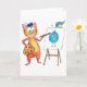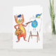 Whimsical Artist Cat Painting a Bird Karte
