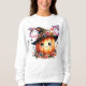 Charmanter Kürbis mit Hexenhut, umgeben von verspielten Geistern und lebhaften Herbstfloralen für festliche, gemütliche Kleidung. Ideal für Herbstfeiern und Halloween-Spaß.