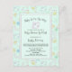 Ein skurriler, handgemalter Stil zarter kleiner Babyvogel und Blume in Himbeere, blau grün und gelb grün auf pastellgrünem Hintergrund. Personalisieren Sie Ihre Mailinginformationen und Registrierungsorte. Für einen kleinen Jungen oder ein Mädchen.
