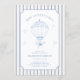 Embark on a 'new adventure' with this charming baby shower invitation! Featuring a whimsical blue hot air balloon illustration against a backdrop of delicate stripes, this design captures the excitement and anticipation of a new arrival. The soft blue and cream color palette creates a serene and joyful atmosphere, perfect for celebrating your little one. It's an ideal way to invite loved ones to share in the joy of honoring the mom-to-be, Shannon Wilkinson, before her big day. Let this invitation set the tone for a memorable and heartwarming celebration.