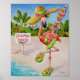 Whimsical Beach Babe Flamingo 2 Wasserfarbe 8x10 Poster