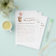 Celebrate the mom-to-be with this adorable "How Well Do You Know Mommy-to-Be?" baby shower game. Featuring a sweet illustration of a bear holding a pink balloon, this cream-colored flyer adds a touch of whimsical charm to your celebration. It's the perfect way to engage your guests and discover fun facts about the expectant mother. This game is sure to be a hit, providing laughter and memorable moments for everyone as they try to guess the correct answers about her pregnancy journey. Make your baby shower extra special with this delightful and engaging activity for all your loved ones.