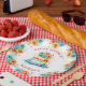 Personalisierte Red and Blue Whimsical Geburtstag Cake Aquarell Illustration Geburtstagsparty Papier Teller.