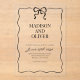 Design feature a simple black and white design with a cute hand drawn wavy border and a small black bow at the top. Using a clean classic font and handwritten calligraphy script. It looks elegant but also a little playful.