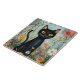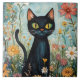 Whimsical Black Cat mit Wildblumen Illustration Fliese