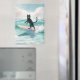Fügen Sie Ihrem Kühlschrank, Ihrem Schließfach oder Ihrem Büro einen spielerischen Küstenstakent hinzu, mit diesem skurrilen Aquarellmagnet mit einem schwarzen Surfen auf dem wunderschönen türkisfarbenen Ozean. Weiche Pastelltöne in Rosa und Blau mit sanften Ozeandetails schaffen einen leichten Strandzauber. Ein kleines Geschenk für Katzenliebhaber, Strandfans oder alle, die ein fantasievolles Dekor genießen. Pair mit anderen Elementen aus der Whimsical Cat Collection für ein passendes Set.