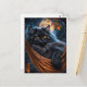 Diese herrliche schwarze Katze mit orangefarbenen Augen nimmt ein Nickerchen in einer Hängematte unter einem Herbstbaum. Der Mond scheint hell im Sternenhimmel hinter ihm. Ist es Halloween? Wahrscheinlich! Dieses Postkartenwerk ist voller Fantasie und Launen. Das perfekte Geschenk für Katzenliebhaber!