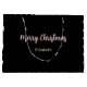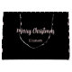 Frohe Weihnachten ist in einem blassrosa Skript auf diesem schwarzen Weihnachtsgeschenk Tasche. Zusätzlicher Text ohne Skript für den Namen des Empfängers ist unter Frohe Weihnachten. Auf dieser schwarzen Geschenktasche erscheint auch ein Muster hellrosa Weihnachtsbäume.