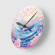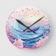 Whimsical Blue and Pink Whale Art Runde Wanduhr