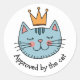 Whimsical Blue Cat mit gelber Krone nach Maß Runder Aufkleber