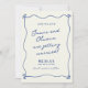 Genießen Sie Ihren besonderen Tag mit unserer Whimsical Blue Hand Drawn Wedding Invitation, die perfekt für Paare geeignet ist, die eine einzigartige und charmante Touch zu ihren Feiern suchen. ・ Bohemisch-Chic-Ästhetik: Ideal für freudlose Paare, die sonderbaren und Retro-inspirierten Elemente schaffen ein boho-chic-Ambiente, das Ihre Einladungen auseinander Set. ・ Versatile Blaue Palette: Die sanften blauen Farbtöne ergänzen eine Vielzahl von Hochzeitsthemen, von rustikalen Outdoor-Party bis hin zu eleganten Gartenmöbeln. ・ Moderne Minimalistische Touch: Trotz ihrer skurrilen Beschaffenheit bewahrt das Design ein gepflegtes, minimalistisches Ambiente, das den modernen Geschmack anzieht. Unser Whimsical Blue Hand Drawn Wedding Invitation verbindet den Charme der handillustrierten Elemente mit einer modernen Empfindlichkeit. Die weiche Grenze und die zarten Details sorgen für eine spielerische Touch, während das elegante, minimalistische Layout Ihre Hochzeitsinformationen übersichtlich und leicht lesbar macht. Der einzigartige Stil der Handschrift verleiht Ihren Einladungen ein persönliches Gefühl, als wären sie liebevoll für Sie gefertigt. Diese Einladungen sind perfekt für Paare, die gewollt haben, ihre Persönlichkeit in jeden Aspekt ihrer Hochzeit einzubinden. Sie geben den Ton für eine Feier, die so einzigartig ist wie Ihre Liebe