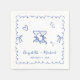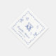 Trendy Retro-inspirierte Hochzeitsnapkins für Ihre Verlobungsfeier, Probe-Dinner, Hochzeitsempfang usw., mit einem französisch-blauen Rahmen mit Kokettenbögen, skurrilen, handgezeichneten Herzensbildern, Sternen und Weingläsern und den Namen der Braut und des Bräutigams in einem spielerisch blauen Drehbuch.