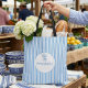 Add a fun touch to your decor with this whimsical and charming blue and white striped hand drawn monogram tote bag design. Perfect for a coastal or cottagecore style, this design adds a fun, playful touch to your decor. Created by Simply Farmhouse Press.