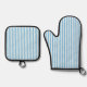 Whimsical Blue White Stripe Preppy Ofenhandschuh & Topflappen-Set