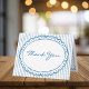 This whimsical thank you card features a soft blue watercolor scalloped oval frame against a classic striped background. Perfect for a wedding with a preppy or coastal aesthetic, this charming design provides a sweet, hand-painted look for your special celebration. Created by Simply Farmhouse Press.